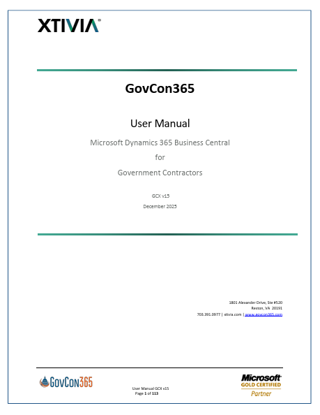 User Manual | Microsoft Dynamics 365 Business Central for Government Contractors