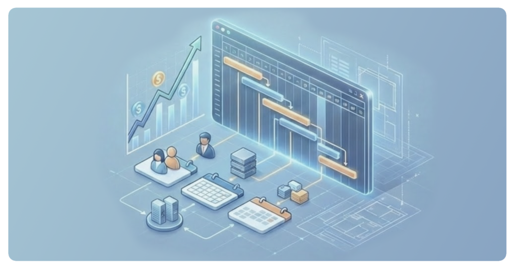 Forecasting and resource planning involve projecting revenue and cost forecasts. It aligns staffing with contract schedules and provides Gantt-style charts for capacity planning.